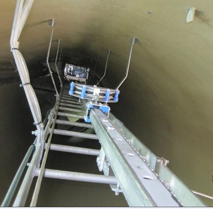 隨著風機功率的增大,塔筒高度不斷增加,從50m,60m,70m到80m,90m甚至超過100m。由于風機的主要部件安裝在高空,日常的運行維護以及檢修都需要通過塔筒爬升到機艙中。