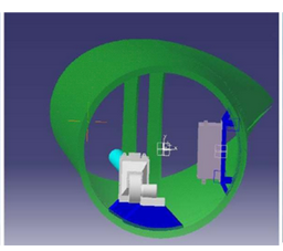 氣流方向如紅色、黃色箭頭所指。加熱時葉片腔內(nèi)氣流通過加熱后沿紅色箭頭所指方向通過玻璃鋼通風管吹向葉尖位置,氣流從葉尖通過與腹板形成的風道形成完整的空氣循環(huán)流動路線,腔內(nèi)空氣的循環(huán)加熱可以有效加熱葉片結(jié)冰區(qū)域(從12米到45米)并兼顧葉片后緣和葉根段,達到葉片防、除冰效果。
